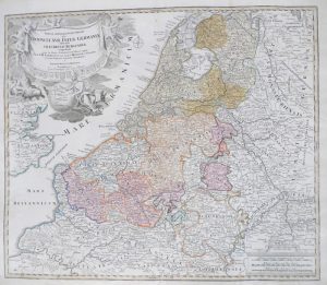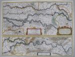 [ 17e-18e s.]. 3 gravures sur cuivre, TC 37 x 49 cm et deux de 48 x 56 cm + marges, rehaussées à l'aquarelle (plis centraux, mouill., déch.). (1). HOMANN, Johann Baptist.- Tabula generalis totius Belgii qua Provinciae XVII Infer[ioris] Germaniae olim sub S.R.I. circulo Burgundiae [...]. Norimbergae, s.d.-- (2). HOMANN, Johann Baptist.- Lotharingiae tabula generalis in qua ducatus Lotharingiae et Barri [...]. Norimbergae, s.d.-- (3). HONDIUS, Henricus.- Descriptio fluminum Rheni, Vahalis et Mosae [...]. Amst., s.d. 2 cartes sur 1 cuivre : la région entre le Rhin et la Meuse au large du Quartier de Nimègue (Gelre) en haut et continuation du Rhin jusqu'à Rheinberg (Wesel) en bas.