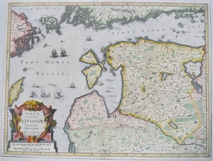 6 gravures sur cuivre, formats divers, 2 rehaussées à l'aquarelle (plis centraux). (1). Nova totius Livoniae descriptio. [Amst.], J. Jansonius, s.d. Carte du nord de la Lituanie, texte en allemand au verso.-- (2). LUBIN, Eilhard.- Rugia insula ac ducatus [...]. [Amst.], J. Jansonius, s.d. Carte de la plus grande île allemande située au large de la ville de Stralsund (Mecklembourg-Poméranie occidentale) dans la mer Baltique, texte en latin au verso.-- 4 cartes extraites de l'"Atlas historique" par Henri Abraham Châtelain (Paris, L'Honore et Châtelain, 1721) : (1). Carte de la partie méridionale du royaume de Suède avec une table des provinces et des villes principales,- (2). Nouvelle carte géographique du royaume de Dannemarc avec une table des villes les plus remarquables,- (3). Carte des estats de la couronne de Suede avec des remarques et des tables tres instructives,- (4). Nouvelle carte de Scandinavie ou des estats du nord dressée sur les observations les plus nouvelles des meilleurs géographes [...].