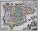 Gravures sur cuivre, formats divers, rehaussées à l'aquarelle (pli central, taches). (1). Tabula Portugalliae et Algarbia. Amsterdam, F. de Wit, [c. 1688].-- (2). Hispaniae et Portugaliae regna. [Nürnberg, J. Chr. Weigel, c. 1740].-- (3). Novissima et accuratissima regnorum Hispaniae et Portugalliae tabella geographica. Aug[usta] Vind[elicorum], M. Seutter, [c. 1744].-- (4). Roy[au]mes d'Espagne et de Portugal [...]. Paris, Lattré, s.d.