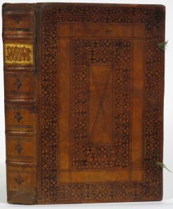 S.l., [c. 1789]. In-f° : [5]-[5 bl.]-133-[118 bl.] ff. (rares taches, bon état). Rel. de l'époque : plein veau richement décoré à froid, double encadrement de filets et roulette florale sur les plats, dos fleuronné à nerfs et titre doré, tr. marbrées (pet. fentes aux mors, pet. manque de cuir au plat sup., un coin à nu, restes de 4 cordons de soie verte, cote "401" sur le plat sup., pet. restaurations aux mors, bas du dos, coins, etc.). Copie soignée, signée E. Giroul en bas du titre, de 54 actes en français, flamand et latin, classés par ordre chronologique (14 mars 1745 au 22 nov. 1788) relatifs à la seigneurie de Heers dans le Limbourg : titres de propriété, conventions et transactions diverses, messe d'anniversaire "pour les trespassés de la famille" du baron de Stockhem, etc. Beau titre calligraphié à l'encre rouge et brune orné des armoiries d'alliance de Stockhem et de Maisières dessinées à la plume et aquarellées, le tout cerné d'un filet décoré au pochoir. Ex. réglé à la mine de plomb, marges tracées à l'encre aux feuillets de l'index.