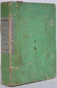 1824. In-8° : 518 pp. avec alternance de texte et de ff. vierges (texte aux pp. 43/150, 179/244, 355/400, 435/446, 483/489). Cartonnage de l'époque : plein papier vert clair, dos lisse avec titre ms. (rel. frottée passim, qqs taches). Manuscrit à l'écriture fort lisible, relatif à l'emploi des graines, racines, résines, etc., présentés en diverses sections séparées par des pages blanches. L'auteur décrit l'usage des plantes rares et parfois peu communes en Europe (salep, jalap...) destinées à se soigner ou utilisées dans les arts (peinture et teinture) : assa-foetidia, blanc de baleine, thé, café, cacao, cardamome ou graine de paradis, séné, encens, corne de cerf, goudron, coton, gommes diverses, zinc, pierre ponce, éponges, ammoniac, alun, sulfates, craies, colle de poisson, gommes, huiles de noix, térébenthine, ocres, cendres, cinabre, blanc de plomb, vert-de-gris,bleus divers, rouges (dont roucou), noirs (d'ivoire, de fumée, de cerf...).