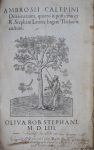 # Renouard, Estienne, 84/85 n° 11; # Adams C-209; # Biogr. univ. VI-392; # not in Machiels, Soltész, Matagne, VD 16, USTC.