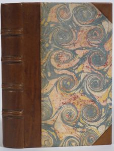 ( Parisius, Johannis Barbier impressoris necnon librarii jurati sumptibus vero Francisci Regnault, finit anno d[omi]ni 1510 quarta die me[n]sis octobris). In-8° : ii/clii-[26] lvs (title-page lacking, one tear and margins in the beginning and the end repaired, dampstains in the margins except one large and light, stained, rare small perforations, lvs y5 and y6 inverted). Modern binding : threequarter leather, marbled paper boards, ribbed spine with blind fillets (pastedowns and flyleaves renewed). Early postincunabulum of this moral treatise (1st ed. : 1503) edited by the poet Bernardino Dardano (1472-1535) and dealing with idolatry, charity, youthness, etc. Text in gothic types decorated with dotted initials heightened and with ornaments in red ink in the table. Device of Jean Barbier on the back of last leaf. The Dominican Vivaldi (+ 1540), professor of theology was the counsellor of the marquesses of Saluzzo.