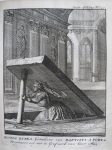 't Amsterdam, Jan ten Hoorn, 1699. 4 delen in 1 vol. in-4° : [18 incl. gegrav. titelplaat]-192, [4]-128, [4]-159, [4]-198 pp.; 12 pl. (kleine lichte watervlek in binnenmarge van enkele pp., hs aantekeningen in potlood en een overtekening op de verso van een pl., 1 pl. met lichte vlekken, laatste blanco p. gelost). Eigentijdse band : perkament, blindgestempelde platten, rug met ribben (band licht vervuild). ZELDZAME EERSTE en ENIGE UITGAVE van deze verzameling van c. 230 gedramatiseerde levensverhalen van bekende en minder bekende vrouwenfiguren sedert de antieke tijd, met veel aandacht voor het sensationele. Titelprent en 12 platen in koper gegraveerd en gesigneerd Jan en/of Casper Luyken.