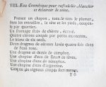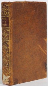 Paris, P.F. Didot, 1798. In-12° : iv-380 pp. Rel. de l'époque : pleine basane mouchetée, dos lisse fleuronné doré, tr. rouges (rel. abîmée - comme c'est souvent le cas pour ce type d'ouvrage -, avec épidermures et manque important au bas du dos). Pendant du "Traité raisonné de la distillation" (1753) et édition augmentée de ce célèbre ouvrage (éd. orig. : 1764). Traite des eaux d'anges, spiritueuses (eau de jasmin, de la Reine de Hongrie...),- des agrumes aux esprits perçants,- des eaux en odeurs d'épices, fleurs ou simples,- du choix des plantes utilisées en parfumerie,- des huiles essentielles de fruits, épices, graines, plantes...,- de la fabrication des laits virginaux,- des eaux, teintures, décoctions et huiles cosmétiques pour le visage et le corps,- des poudres et huiles pour le teint, les dents, lèvres, yeux, mains, cheveux, gants,- et des recettes de parfums et vinaigres.
