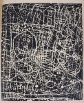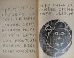 [ Paris], (L' Art brut, noël 1948). In-12°. Agrafé, sous couv. jaune dont le plat sup. est imprimé (plat sup. cons. avec pet. restaurations jusque avant l'agrafage, cachet (?) part. imprimé dans le bas du plat sup. ("Franc[e ?]"), plat inf. renouvelé). RARE ÉDITION ORIGINALE de ce texte en amusante écriture phonétique, stencilé à la main par l'auteur sur papier journal et illustré par ses soins de 6 linogravures. Édition non justifiée mais tirée à 165 ex. dont 15 contiennent 2 gravures supplémentaires.