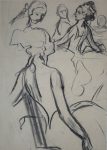 Avec en supplément, une AQUARELLE ORIGINALE, 16 x 9 cm, datée 1916 et signée par Edmond Malassis et une ÉTUDE non signée, à la mine de graphite, figurant deux femmes.