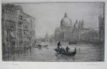 - 1 pointe sèche (vue du grand canal), 9 x 14 cm, titrée et justifiée "1er état".
