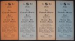 - AFFICHETTES : 31 x 14 cm, impression recto. QUATRE épreuves : en noir sur fins papiers orange, jaune pâle, bleu et gris-vert (bords lég. passés, sans plis).