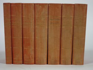 Bruxelles, Société belge de librairie, 1894 [- 1903]. 7 vol. in-8° : [2]-640, [4]-708, [4]-737, [4]-767, [4]-736, [4]-734, [4]-349 pp.; 39 h.-t. sur doubles pp. (qqs rares et pâles rousseurs, non coupé). Rel. de l'époque : pleine percaline rouge, dos lisses (dos passés). ÉDITION ORIGINALE. Sorte de dictionnaire inverse, l'ouvrage forme la "contrepartie naturelle de l'Armorial de Rietstap, les armoiries étant classées par meubles". Indispensable malgré sa consultation difficile, résolue par Van Helmont en 1992.