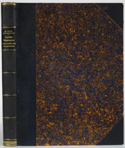 Bruges, Edw. Gailliard & Comp., 1871. In-4° (n.c., rousseurs au début et à la fin du vol.). Rel. du 20e s. : demi-chagrin bleu foncé à coins, dos à nerfs (coiffe sup. très lég. frottée). Illustré d'arbres généalogiques et armoiries lithographiés.