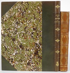 MILLEVILLE, H.-J.-G.- Armorial historique de la noblesse de France. P., bureau de l'armorial historique, et chez Vaton, 1845, gr. in-8° demi-cuir de Russie à coins (rouss., pet. défauts, mors sup. part. fendus). Ill. de blasons in texto; ex-libris armorié baron Oscar-Antoine Surmont de Volsberghe.-- MARCHAND, J.- Les armoiries de la maison de La Rochefoucauld et des principales familles du sang de Lusignan [...]. Étude héraldique comparée. P., Béziat, 1951, gr. in-4° demi-chagrin (qqs pet. défauts). Ill. d'1 front., 1 in texto et 31 pl. Tirage à 350 ex., un des 325 sur vélin "Béarn" (n° 305).