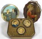 11 boites métalliques à l'effigie des rois, reines et princes de Belgique.-- 11 médailles ou plaquettes en métal.