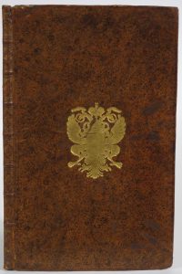 Gand, Augustin Graet, 1719. In-f° : front.-32 pp.; 6 h.-t. (déch. sans manques aux 3 prem. pl., 1 pl. détachée de son onglet, plis dans le texte, qqs taches ou lég. salissures marg.). Rel. armoriée de l'époque : plein veau moucheté, plats ornés d'armoiries dorées, dos fleuronné doré à nerfs (éraflures sur le plat sup., défauts, coiffes absentes, mors sup. fendu sur 0,5 cm, coupes et trois coins -fort- émoussés). ÉDITION ORIGINALE. Splendide illustration célébrant l'inauguration de Charles VI comme comte de Flandre, consistant en 1 frontispice allégorique gravé par Michiel Heylbrouck d'après Joan B. van Volxsom et 6 très grandes planches dépliantes (jusqu'à 89 x 83,5 cm) par Heylbrouck, Bertheram ou Harrewijn d'après Van Volxsom. Elles figurent les cérémonies qui eurent lieu à Saint-Bavon et à la Vrijdagmarkt (place du Vendredi), l'Arc de Triomphe, les 4 pyramides pyrotechniques et le feu d'artifice autour de la statue de Charles VI. Le texte fait l'éloge de l'empereur, décrit les fastes et en donne les participants. Charles (1685-1740), fils de l'empereur Léopold I, devint souverain du Saint-Empire Romain en 1711 et comte de Flandre en 1713, si bien que le transfert complexe du pouvoir entre les Habsbourg espagnols et autrichiens s'étira au long des années 1713-1715. En 1717, la ville de Gand fut enfin prête pour l'inauguration de son premier souverain autrichien, compensant ce délai par le lustre des festivités.