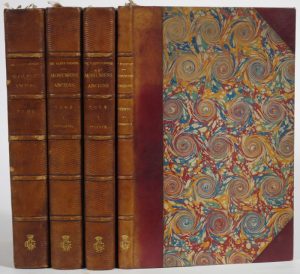 Paris [- Lille,- Bruxelles], Saillant [- Léonard Daniel,- Weissenbruch], 1782 [- 1806]. 2 tomes en 3 vol. in-f° : [6]-i/cccclxi [i.e. ccccxli], [2]-cccclxiii/mlxxi-[4]-144, [2]-xlvi-[2]-414 C. pp.; 31 h.-t. ou tableaux, le plus souvent dépl. (qqs pp. lég. jaunies ou brunies, t. II lég. jauni, très claire mouill. marg. au début du t. I-1re partie, déch. renforcées à 3 pl. du t. I-1re partie, déch. marg. à 1 f. de texte au t. I-1re partie sans manque, qqs rouss. et taches éparses, erreurs de pagination dans le t. II). Rel. monogrammée du 19e s. : demi-cuir de Russie brun à coins, plats de papier marbré, dos à nerfs avec monogramme doré en queue, tr. jaspées de rouge (dos et mors lég. passés, qqs nerfs frottés, pet. épidermure au t. II, qqs coupes et coins +/- émoussés, ex-libris armoriés modernes sur les contreplats, biogr. ms. de Saint-Genois sur la garde sup.). ÉDITION ORIGINALE de cette importante publication donnée en livraisons durant 34 ans, ce qui explique la rareté des exemplaires complets. Le dernier volume n'a pas été achevé et seuls quelques exemplaires, dont le nôtre, vont jusqu'à la p. 414 (y compris les pp. b et c). Illustré de 8 planches, de quelques in texto ou pleines pages et avec 21 tableaux généalogiques.