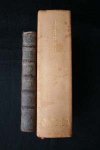 In-12 sous reliure veau brun, cinq nerfs, titre et fers dorés - Coins, coiffes et dos très usés, intérieur correct, le privilège est daté de 1695 – Pas présent chez Barbier