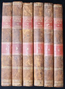 6 volumes In-8 sous ½ basane d'époque, tranches mouchetées, dos lisses avec pièces de titre et de tomaison en cuir rouge, petits frottements d'usage, quelques auréoles et rousseurs sans gravité – Belle série