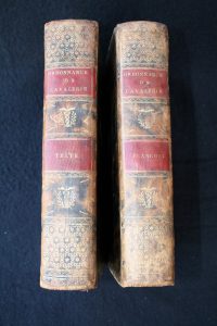 seconde édition – 1 volume de texte et 1 volume de 128 planches la plupart dépliantes – Belle reliure d’origine marbrée In-8, dos orné, pièces de titre en maroquin, roulette dorée sur les plats et les chasses – Beaux exemplaires