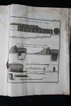 Grand In-4 sous reliure plein veau abîmée, dos à nerfs - 29 planches dépliantes, un bandeau gravé - Etat très passable de la reliure, mors complètement fendu, trace de mouillure importante, mais ensemble complet – attaque de rongeur sur la frange des pages – Exemplaire de travail