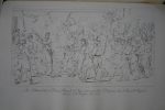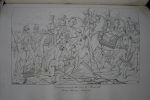 Petit In-folio comprenant un album de 73 planches (dont 11 doubles) gravées au trait sur papier fort, d’après des œuvres de Regnault, Horace-Vernet, Gros, David, Clodion, etc. - Reliure ½ toile d’époque, large mouillure claire en tête et petites piqûres le long du volume, coins frottés, important manque de toile au dos