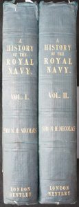 MARINE - 2 volumes NICHOLAS H. N. Sir - A history of the Royal Navy from the earliest times to the wars of the french revolution – à London chez Bentley – 1847 -