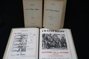 Belle parution sous emboîtage cartonné comprenant 19 cartes dépliantes pour le tome I (de 1 à 17 plus une planche 4bis et une planche annexe) et de 24 planches dépliantes pour le tome II (de 18 à 40, sans la planche 30, 2 planches pour les annexes) – Le tome II contient une enveloppe avec des notes manuscrites et des dessins sur un cours d'histoire militaire ainsi que de nombreuses reproductions de cartes de batailles sur calque – Ensemble rare