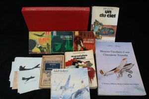 AVIATION XX – 10 volumes / 7 dessins •CHAMPAGNE J. & DETOURNAY G. - Blasons familiers d'une chevalerie nouvelle, L'aviation belge à travers ses insignes – Arlon, éditions Caractere – 1996 – Grand In-4 broché, petites mouillures – Envoi...