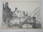 2 volumes In-folio de 268 & 284 pages dans un double encadrement de filets noirs, 30 planches, 3 planches de plans en noir, dont 1 dépliant, nombreuses vignettes gravées dans le texte, ½ toile rouge d'éditeur, titre, tomaisons et filets dorés aux dos, titre doré aux plats supérieurs (dos passés et usés - lacunaire sur 8 cm en tête du tome I et en partie détaché) - Coiffes et coins usés, pâles auréoles éparses, plus soutenues en fin du tome II. Tome II : salissure en marge de la page 53, déchirure angulaire en pied de la page 129, reliure faible - Bien complet de ses 30 planches, généralement fraîches, offrant les reproductions sur papier teinté des gravures de l'édition originale parue en 1854-1857 – Il est donc question de la vallée de la Semois, de la Sûre et une belle partie consacrée au Luxembourg avec Vianden, Brandembourg, Pettingen, Ansembourg ...