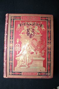 Grand In-4 sous une superbe percaline rouge d'éditeur, plats ornés de SOUZE (légères piqûres), dos orné légèrement frotté (mors supérieur), tranches dorées, superbe gouttière lingot, coins et coiffes bien solides, rares rousseurs du papier, 323 gravures sur bois et une carte – Reliure signée Magnier et fils