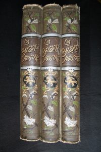 3 forts volumes In-4 dans un superbe cartonnage aux beaux plats et dos ornementés – Tranches dorés, très légers ressauts de cahiers – Nombreuses gravures en noir et en couleurs en premier tirage – Quelques frottements d'usage, brochage lâche mais solide, mors et coiffes et coins usés – Bel ensemble rare sous ce cartonnage de luxe
