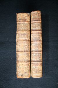 2 volumes In-12 - Plein veau brun, dos ornés à 5 nerfs, pièces de titre et de tomaison, coins et coiffes émoussés, dorure des dos estompée, page 211 légèrement déchirée sans manque, galerie de vers en fin de tome I