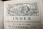 4 volumes pleine basane de l'époque, tranches rouges - Il s'agit ici des 8 volumineuses parties contenant les décisions papales importantes, rarement réunies ensemble qui constituent une importance source documentaire. La collection complète comprend 19 volumes publiés entre 1727 et 1758. Provenance monastique en ex-libris – Belles lettrines et vignettes - Mors fatigués – Tome I : piqûres parfois prononcées, les 30 dernières pages ont subi un assaut important de rongeur, Tome II, III et IV en relativement bon état
