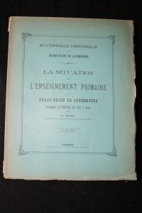 STATISTIQUE HISTORIQUE WITRY Th. - La situation de l'enseignement primaire de 1815 à 1900 - Statistique historique du Grand Duché de Luxembourg - Luxembourg chez Bück – 1900 –