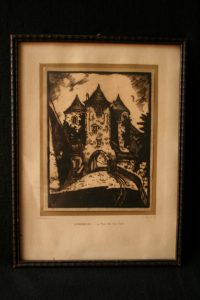 Luxembourg : La porte des Trois Tours – 1938 – Lino J.-P. Ker – Belle gravure sur bois avec encadrement d'époque