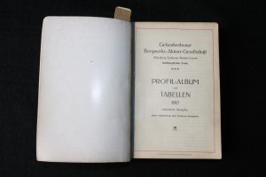 Gelsenkirchener Bergwerks-Aktien-Gesellschaft. Abteilung Aachener Hütten-Verein Aachen-Rothe Erde. Profil-Album und Tabellen 1912. Mit einer doppelbl.-gr. Karte und 8 doppelbl.-gr. photogr. Tafeln. - Aachen, La Ruelle - ca 1912 - Achtzehnte Ausgabe. Unter Aufhebung aller früheren Ausgaben. Kl.8°. 400; 40 S. (Beiheft in der Tasche am vord. Deckel). OLwd mit Rücken- und Deckeltitel und Deckelemblem in Gold. Leicht berieben; zart gebräunt; Vorsätze leicht angestaubt; Beiheft mit kleinem Eckknick. Eine Tafel mit kl. Klebespur.