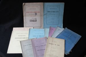 CHEMIN DE FER – RACHAT NATIONALISATION – 11 documents •SAY Léon - Le rachat des chemins de fer – à Paris chez Guillaumin – 1881 – In-8 broché de 27 pages en bon état •LESGUILLIERS J. - La question des chemins de fer et M. Léon Say...