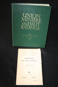 MINES – AFRIQUE - 2 volumes •Union minière du haut katanga, 1906-1956 – à Bruxelles aux éditions Cuypers – 1956 – reliure In-4 sous percaline d'éditeur, très belle iconographie – Bon état •PIRENNE J.-H. - Histoire du site d'Inga...