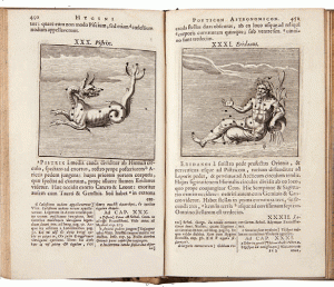 • Hyginus. Fabularum liber avec ses 277 légendes mythologiques introduites par une généalogie des dieux et Pocticon astronomicon où sont exposées des légendes relatives à 41 des principales constellations et des notices sur cinq planètes.