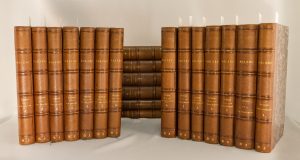 BALZAC (Honoré de) - CEuvres complètes Alexandre Housslaux, Paris. 1855. 20 volumes in-8', demi-chagrin havane, reliure uniforme pour la série. Dos avec auteur et titre dorés, initiales D.J. en pied de chaque volume. Les volumes sont bien à la...