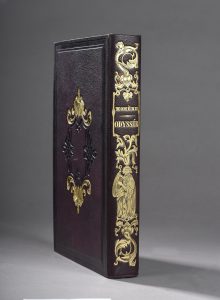In-8°, chagrin violine, large filet estampé à froid encadrant les plats, fleurons dorés et à froid au centre, dos lisse orné d’un décor romantique personnalisé, tranches dorées (reliure de l’ époque).