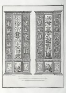 Quatorze planches en deux séries (8+6) dont un titre aux armes d’Ermanno Schubart, à qui l’ouvrage est dédié, gravé par Francesco RAINALDI d’après Luca CAMPARINI.