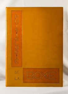 COURIÈRES (Édouard des) Physiologie de la boxe Librairie Floury, Pans. 1929. Lithographies originales de Luc-Albert Moreau. 1 volume in-folio reliure signée Septier en plein veau lisse (box) camai. Dos lisse et sans titre. Sur le plat supérieur...