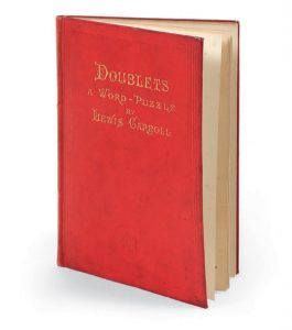 Deux mots d’égale longueur sont proposés, le jeu consistant à les relier en interposant d’autres mots, chacun ne différant du suivant que par une seule lettre. Publiés à partir du 29 mars 1879 dans Vanity Fair, ces jeux furent recueillis pour la première fois dans cette plaquette rassemblant 13 puzzles. Le terme de doublets fut choisi d’après une des incantations des sorcières de Macbeth, reproduite sur la page de titre. Le révérend Dodgson, alias Lewis Carroll, avait imaginé ces récréations à l’intention de deux petites filles désoeuvrées, Julia et Ethel Margaret Arnold, auxquelles l’ouvrage est dédié. Les doublets de Carroll devinrent un jeu populaire en Angleterre.