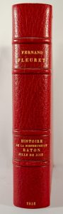 FLEURET Fernand - Histoire de la bien-heureuse Raton fille de joie Edition Mornay. Paris, 1931. Illustrations de Chas-Laborde. 1 volume in-4' en demi-maroquin framboise à coins, Dos à nerfs avec titre doré. Tête dorée. Couverture et dos...