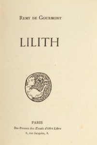 GOURMONT, Remy de. Lilith. Paris, des presses des Essais d’Art libre, 1892.