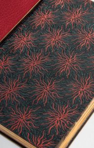 In-12 (181 x 120 mm) de (2) ff. et 294 pp. : maroquin brun janséniste, dos à nerfs, doublures de maroquin rouge serties d’un filet doré, gardes de soie brune brochée, couvertures jaunes imprimées conservées, non rogné, tranches dorées sur témoins (Noulhac).