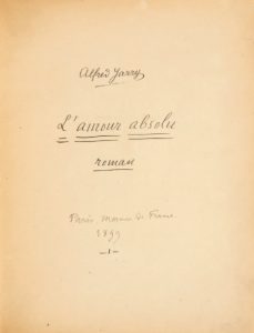 JARRY, Alfred. L’Amour absolu. Roman. Sans lieu ni date [Paris, l’auteur, 1899].
