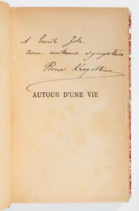 Intéressante provenance : “Le personnage de l’anarchiste a hanté Zola et l’a angoissé, il l’associe à la destruction et à la mort” (Dictionnaire d’Emile Zola, 27). Dans Germinal, il dresse le portrait de Souvarine, terrifiante figure du Mal. Après les attentats commis par Ravachol en 1892, il répondit à un journaliste : “Les anarchistes sont des poètes, c’est l’éternelle poésie noire, vieille comme l’humanité, comme le mal, comme la douleur.” Émile Zola reçut l’exemplaire peu avant sa mort en septembre 1902. Dans La Guerre (1912), Kropotkine fait de nombreuses