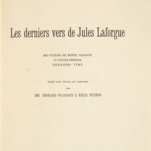 LAFORGUE, Jules. Les Derniers Vers. Édités avec toutes les variantes par MM. Édouard Dujardin & Félix Fénéon. Paris, Imp. Deslis, 1890.