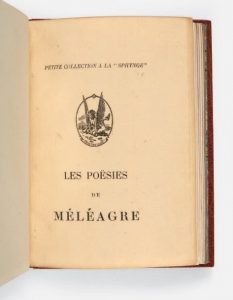 La traduction de Méléagre révèle l’érudition de Pierre Louÿs et son goût pour la poésie hellénistique. L’édition originale était déjà donnée comme étant “très rare” au catalogue de la vente Pierre Louÿs en 1926.